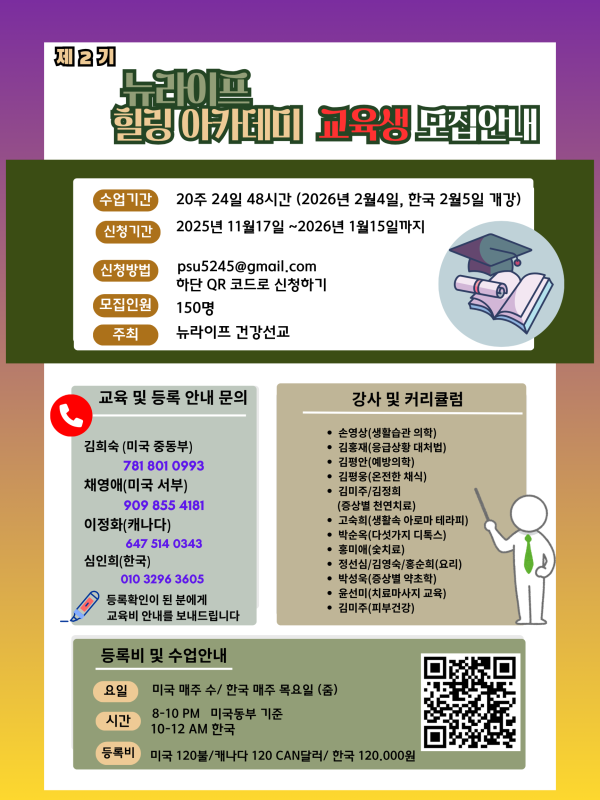 - 이전글힐링아카데미 교육영상(숯치료, 수치료, 약초치료) 25.12.18