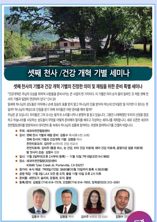 기타 셋째 천사 기별과 건강 개혁 기별 세미나 페이지 정보 작성자 peterkim쪽지보내기 메일보내기 자기소개 아이디로 검색 전체게시물쪽지보내기 메일보내기 자기소개 아이디로 검색 전체게시물 작성일2024.10.11 05:46 조회수 10,548 글씨크기 + - 본문 예수님의 재림을 고대하는 성도들을 위한 특별 세미나 추천 1 페이스북 공유 트위터 공유 이전글제34회 남가주 한인재림교회 연합찬양제 24.10.31 다음글남가주 오렌지 중앙 교회 창립 23주년 기념 건강 EXPO 일정소개 24.10.10 댓글 0 댓글목록 등록된 댓글이 없습니다. 목록